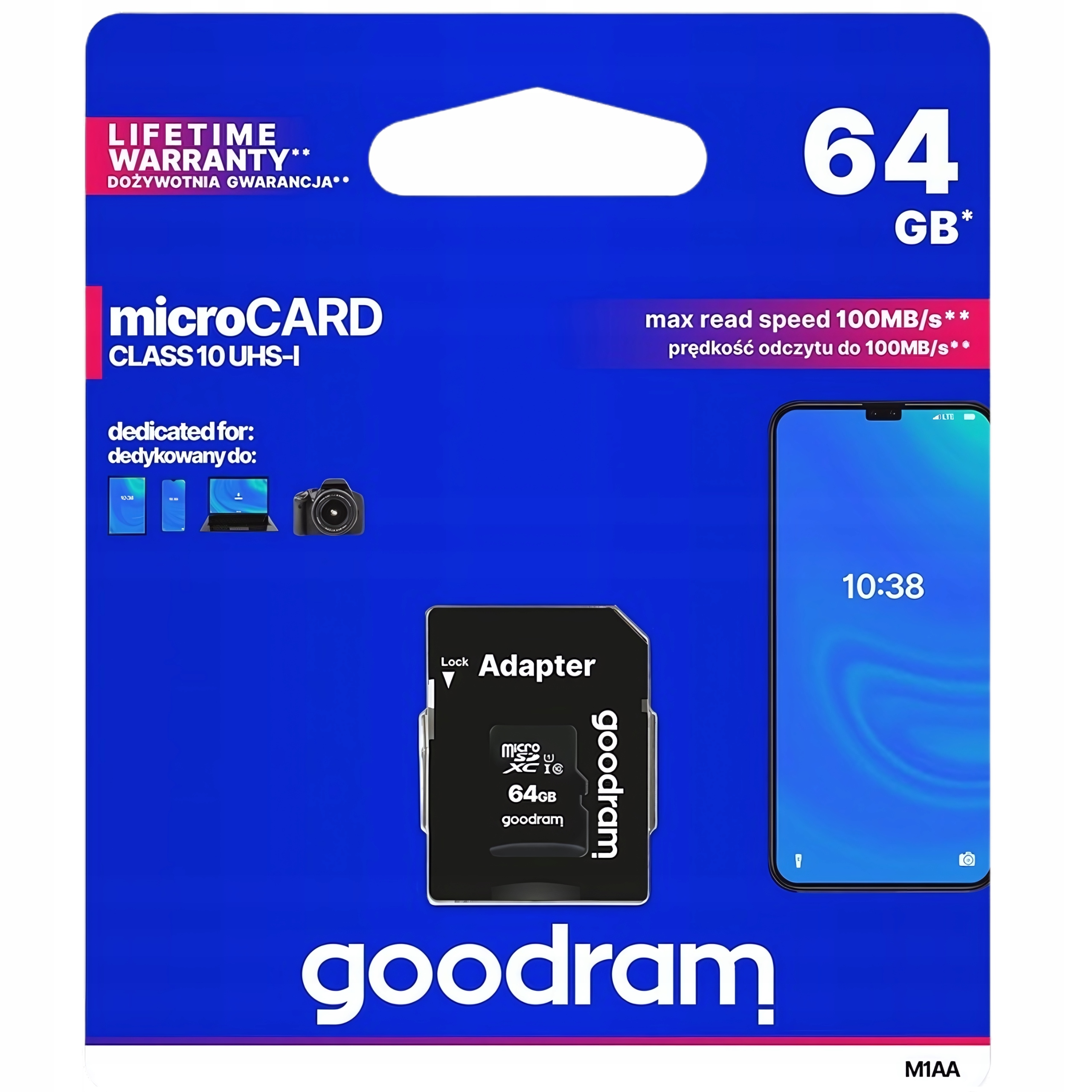 Karta Pamięci 64 GB Micro SD GOODRAM Klasa 10 Do telefonu aparatu kamery Adapter SD